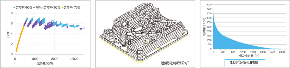 金马团队采用自主研发的多套数据模型建模测算需求能耗在各类场景下的分布,通过大数据分析,为机电系统规划和设计进行方向性+定量的指导