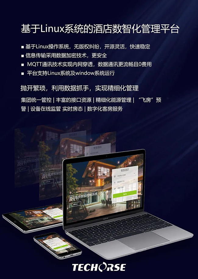 作为AIOT智慧场景应用服务商,金马科技深耕酒店行业,聚焦客户需求,基于开源操作系统——Linux 研发出新一代酒店数智化管理平台。