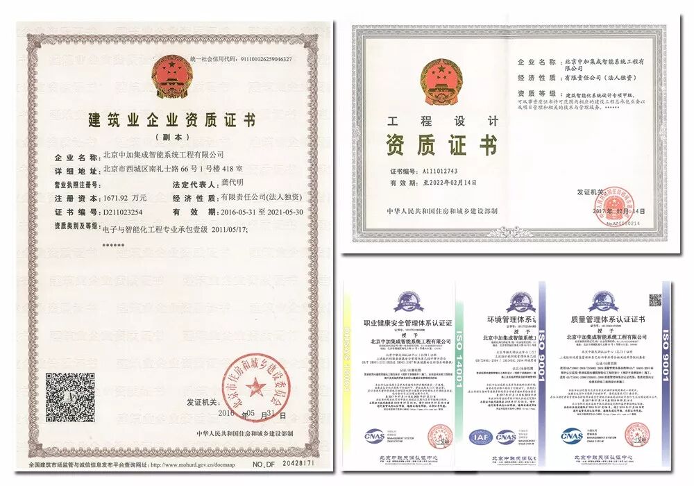 中加集成成立于1994年,原是北京市建筑设计研究院的全资专业智能工程公司。公司拥有行业顶级资质,获得ISO9000三项认证,取得多项市级和国家级奖项,凭借出色的技术能力,先后承接人民大会堂、毛主席纪念堂改造、北京电视台新址、北京奥林匹克公园、五棵松文化体育中心等众多工程的设计及施工任务,在行业内享有极高声誉。