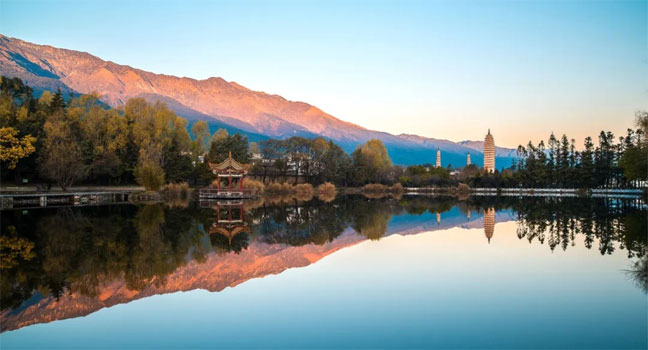 大理养生酒店背靠苍山,面临洱海,在静谧的庭院内,可远观大理古城、崇圣三塔、纯净洱海,可享受人工温泉养生度假体验。