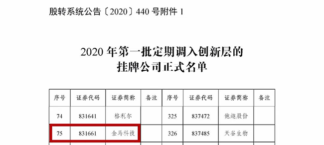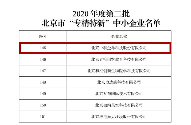金马科技调入新三板创新层,荣获"2020年德勤-亦庄20强,入选北京市“专精特新”名单,再次受到新华社关注报道;