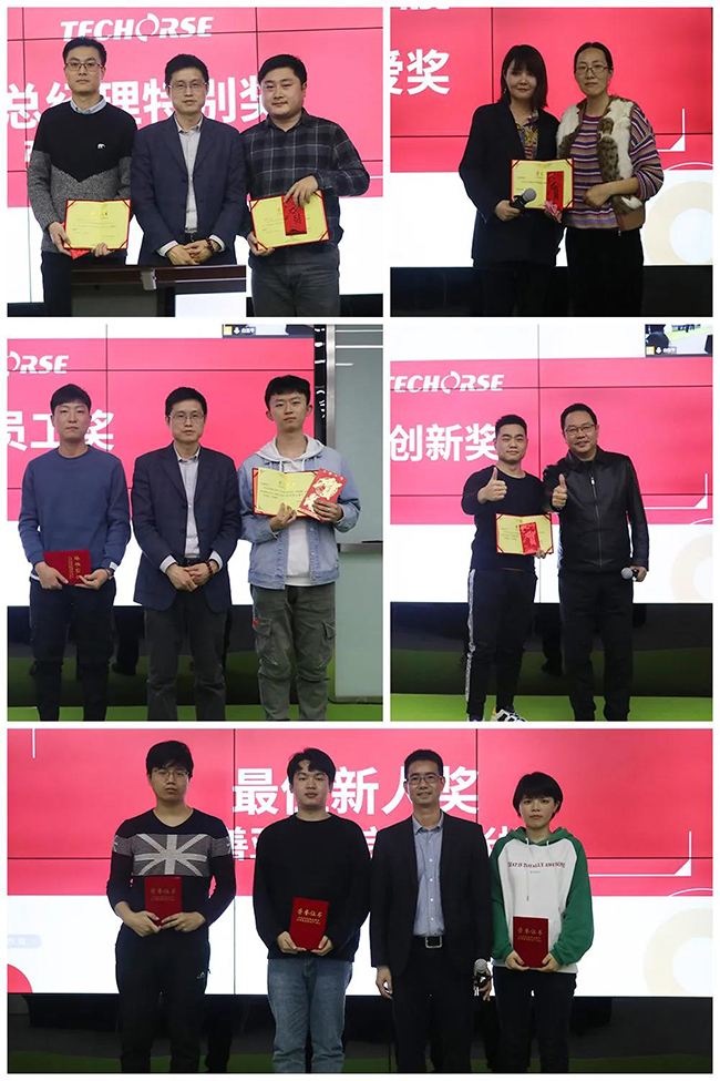 千淘万漉虽辛苦,吹尽狂沙始到金。会议现场表彰了2020年在工作中兢兢业业、开拓进取的优秀员工,陆续为他们颁发了“优秀员工奖”、“博爱奖”、“创新奖”、“销售冠军奖”、“最佳新人”等多个奖项。