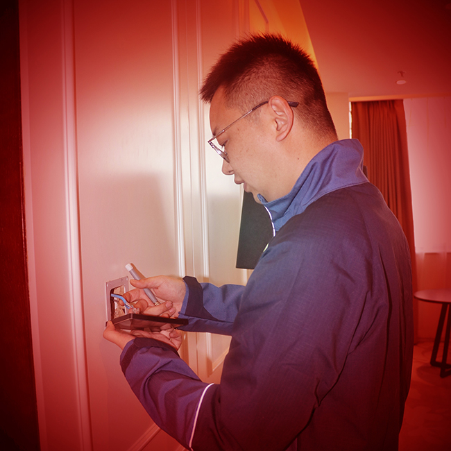 工程师张东正奔走在科技与体验交汇的最前沿。他全心投入于酒店的AIoT智慧场景应用,每一个智能联动、每一次场景优化的背后,都是他的精心描绘。他不仅是工程师,更是智慧生活的构建师,用可靠的技术为宾客打造触手可及的梦幻体验。